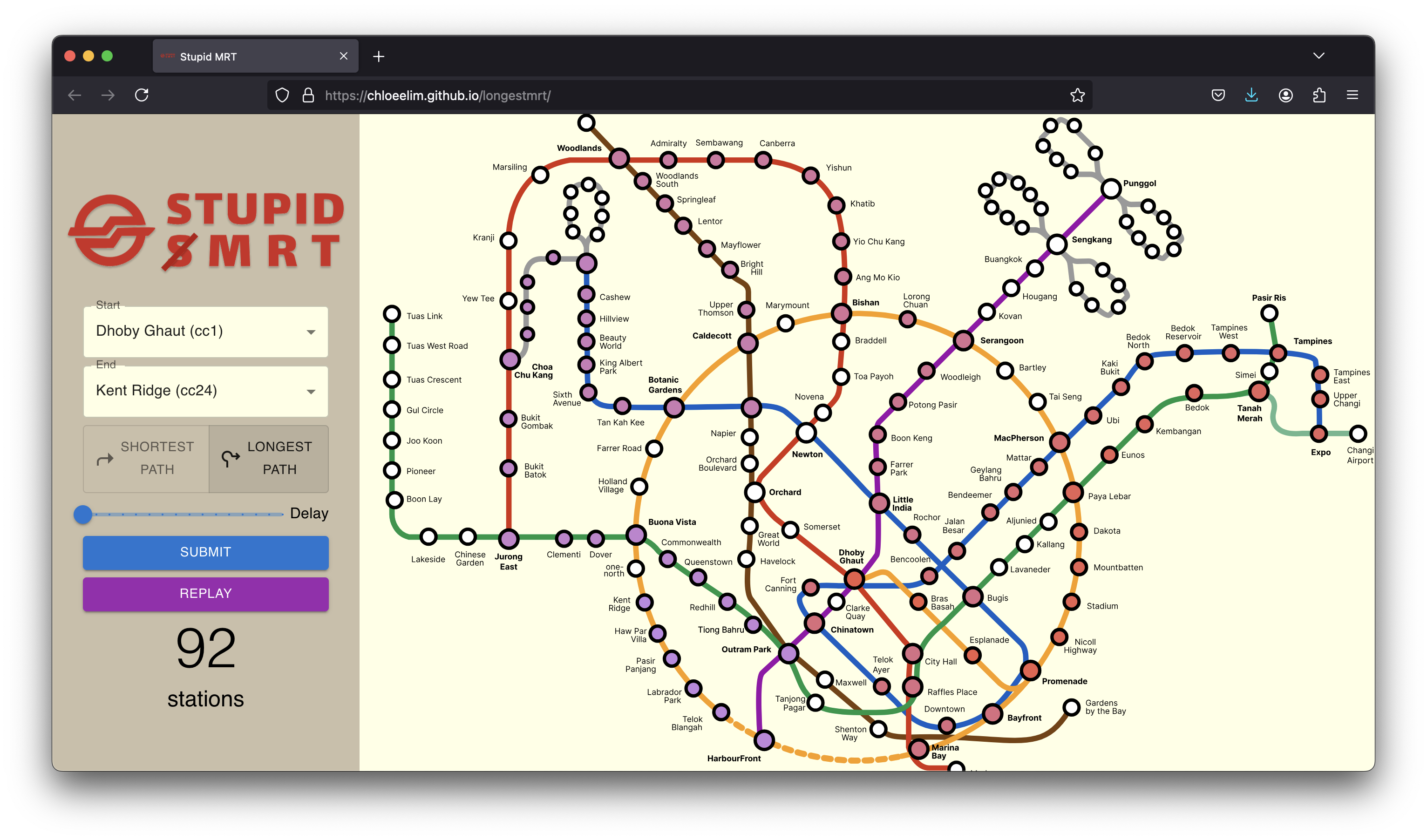 Stupid MRT finds you the longest possible route between any 2 MRT stations. Because why not?